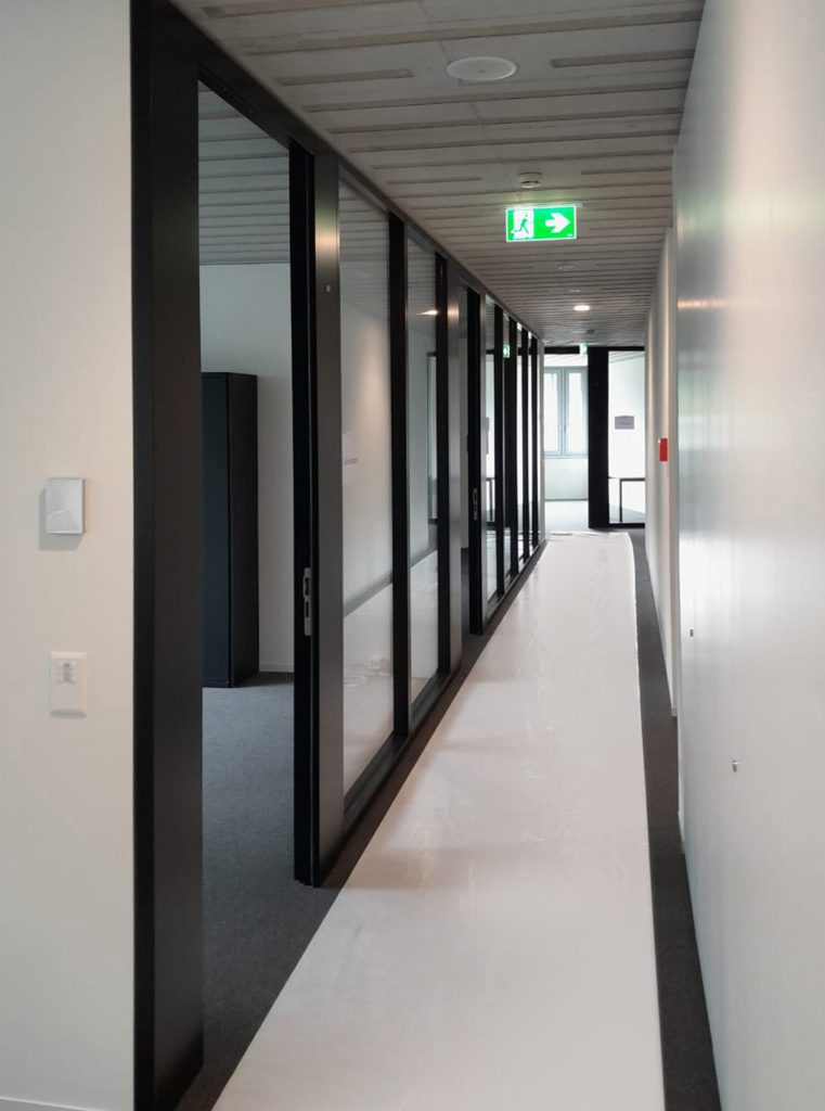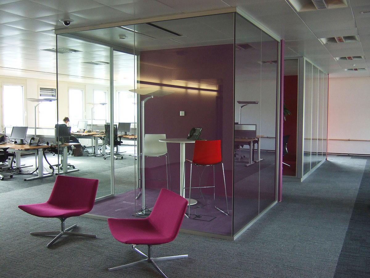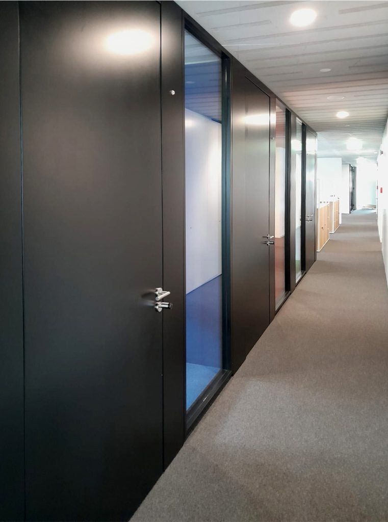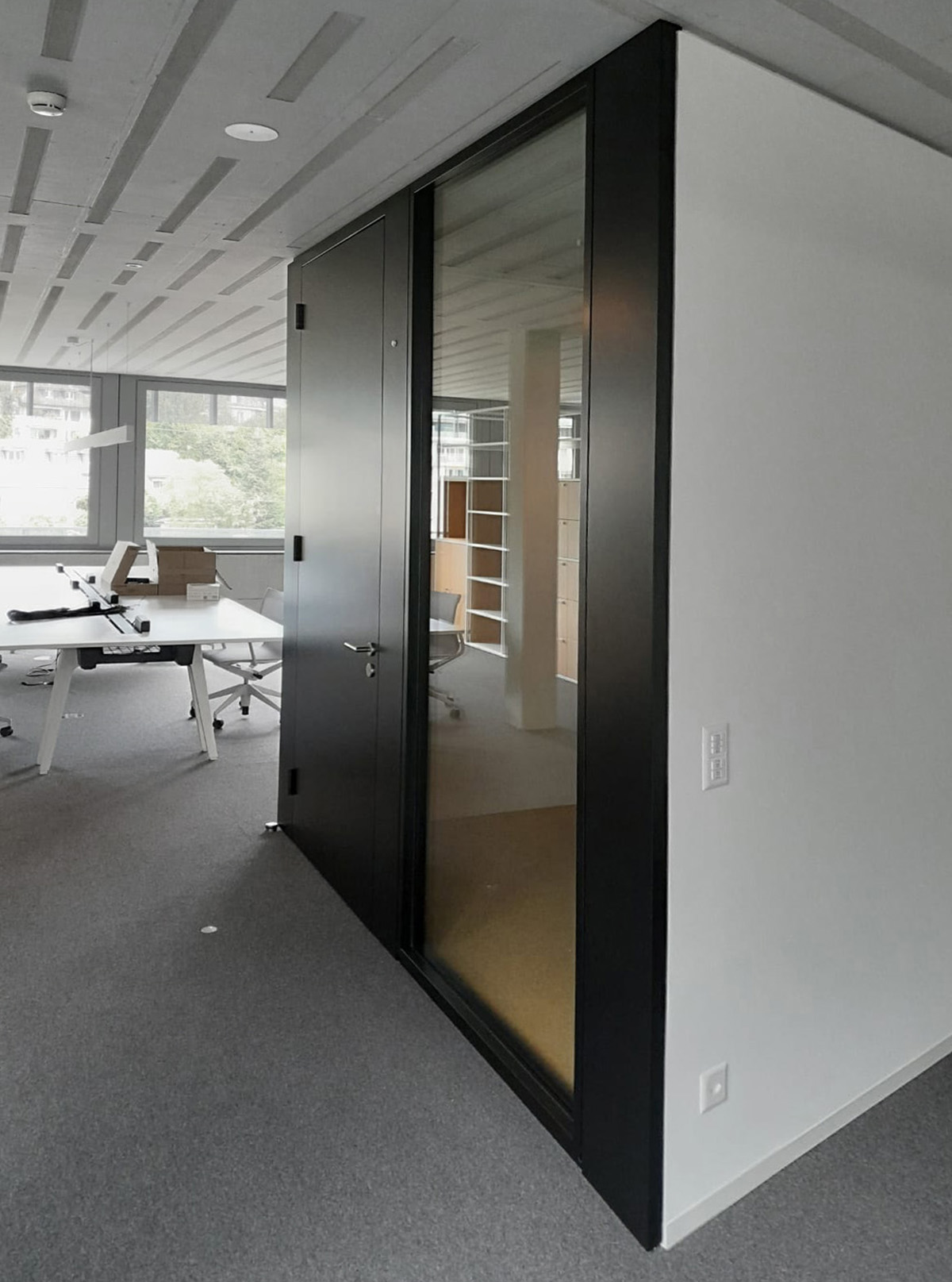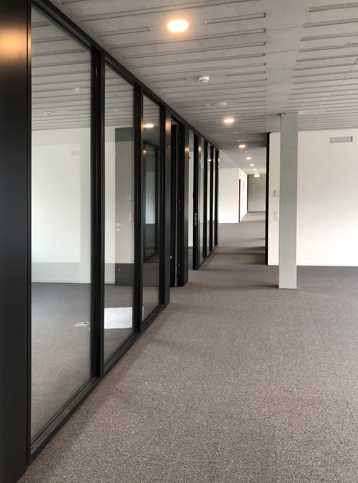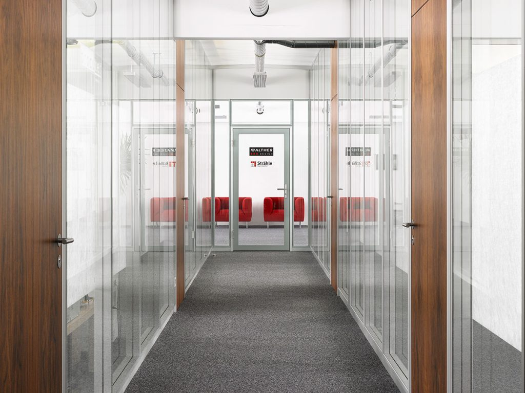 Zuerst im Kombination mit kompletten Möblierungen, dann bald nur noch mit Systemtrennwänden der Firma Strähle. Strähle Raum-Systeme ist einer der führenden Trennwandhersteller in Europa mit einer über 100 jährigen Geschichte und ist immer noch im Familienbesitz, mittlerweilen in der 5. Generation.