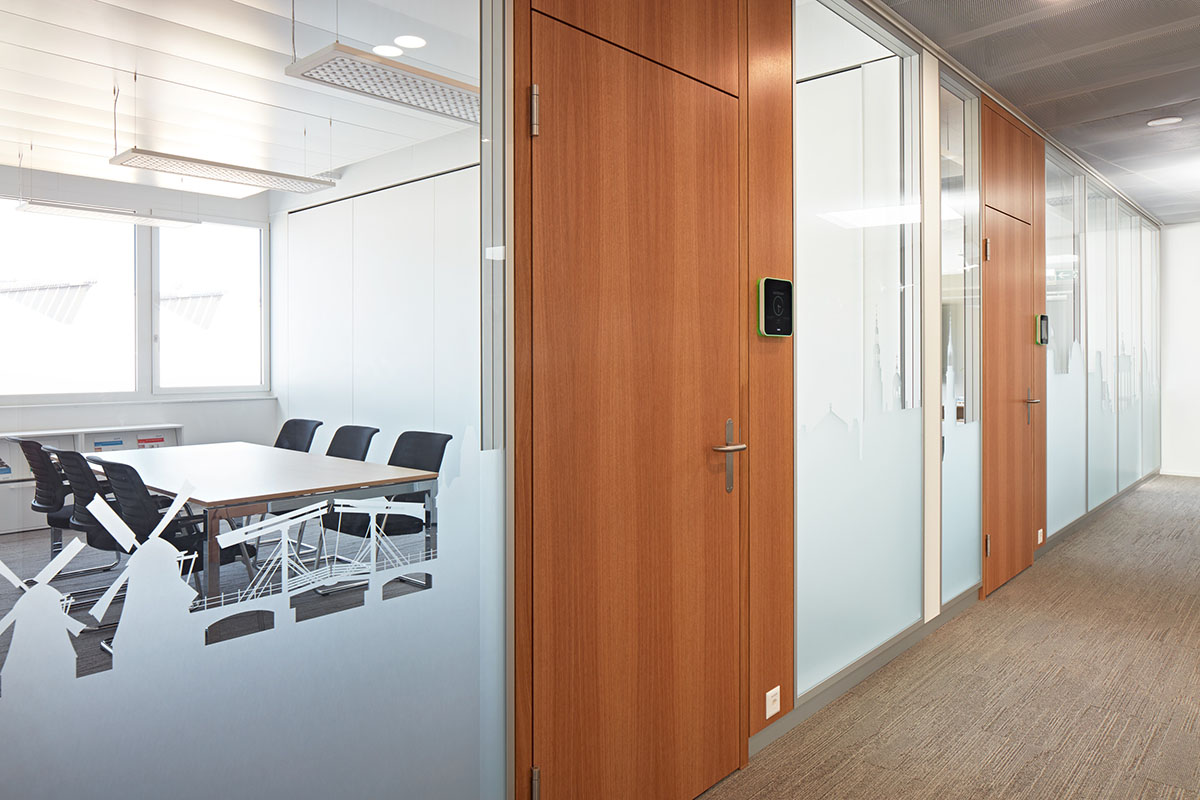 2000 Frontbündig mit raumhohen Eichen Portaltüren mit Überströmelementen im Türseitenteil